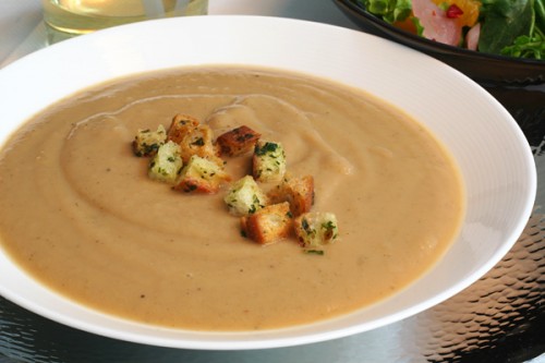 Unite la castagne ai ceci e fate cuocere insieme per 10 minuti in modo da sposare i sapori. Ora potete, secondo gradimento, frullare tutto, per nulla o in parte la zuppa-crema a seconda dei vostri gusti. Le nonne direbbero di passare i ceci, di modo da trattenere la pellicina. Ed in effetti avrebbero ragione, se ne avete tempo e voglia usate sempre il passaverdure e l’olio di gomito, i sapori e la consistenza sono più buoni e certamente è più ecologico dell’elettricità. Potete servire così con crostini di pane croccante, pepe bianco ed un filo d’olio a crudo.